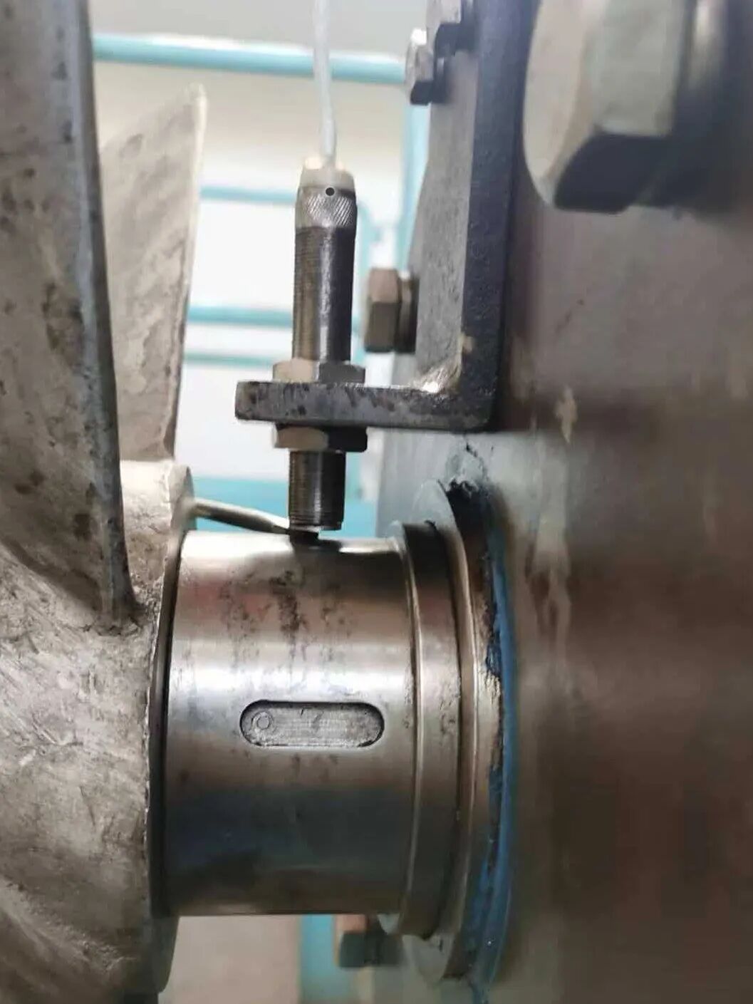 測轉速時對準測速盤齒頂,按照規定的距離(一般1mm左右)安裝,當測速盤轉動時,每一個齒經過測速探頭端面會引起感應線圈的阻抗周期性變化,從而使線圈有感應電流和電壓的周期性變化,這一周期變化信號通過轉速表計算出變化的頻率,可以計算出相應的轉速。